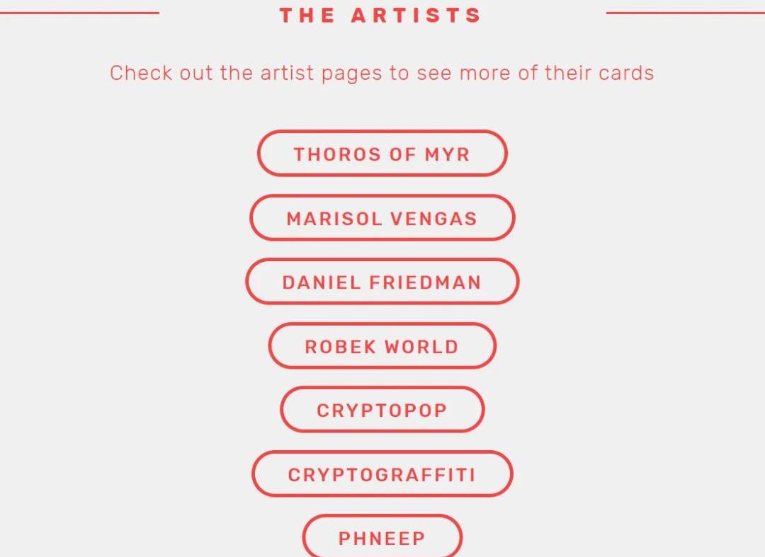 参与CurioCards的艺术家名单CryptoGraffiti是以加密为主题进行创作的知名艺术家,他的作品Nakamoto曾被以17个BTC的价格卖出。