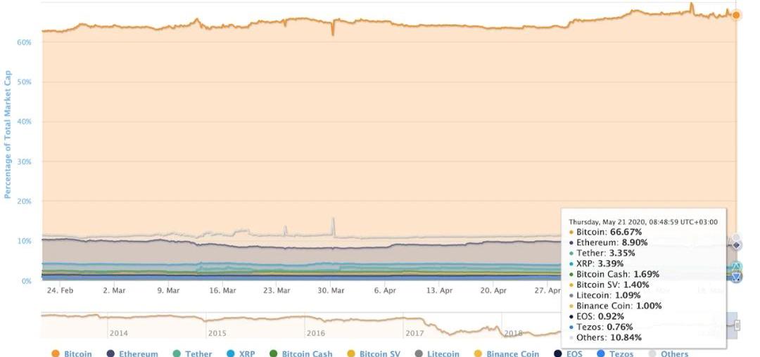 -比特币的市值占密码学货币总市值的2/3-另一方面,去中心化金融已经利用以太坊区块链上的智能合约功能,实现了真正的飞跃。DeFi协议越来越受欢迎。通过以太坊网络上的智能合约,用户现在可以通过完全去中心化的方式交换、交易并借贷各种代币和ETH。