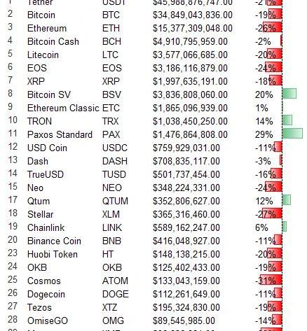 消息层面,美国州监管机构命令欺诈性加密挖矿计划UltraMining关闭;英国央行正在审查加密货币对未来货币使用的影响;济南发布首个“区块链+疫情防控”标准;世贸组织预测今年全球贸易将缩水13%至32%。市场情绪层面,根据Alternative.me统计,今日市场情绪为极度恐慌,恐慌贪婪指数为22。2.币种涨跌幅分布今日市值前100的币种中,涨幅最大的是BTC的三儿子比特黄金BTG,涨幅近20%,四儿子比特钻石也有超过10%的涨幅。但此次拉盘只是借助BCH、BSV的减半行情拉盘蹭了一波热度,明后几日回调的概率极大。二线币LINK一路攀升,先是带动了智能合约板块的上涨,之后一枝独秀上涨,但基本面并没有明显的变化,今日追涨风险巨大。前几日提到小币种CVT会有一波很大的跌幅,而今日跌幅最大的是CVT,跌幅超过20%。