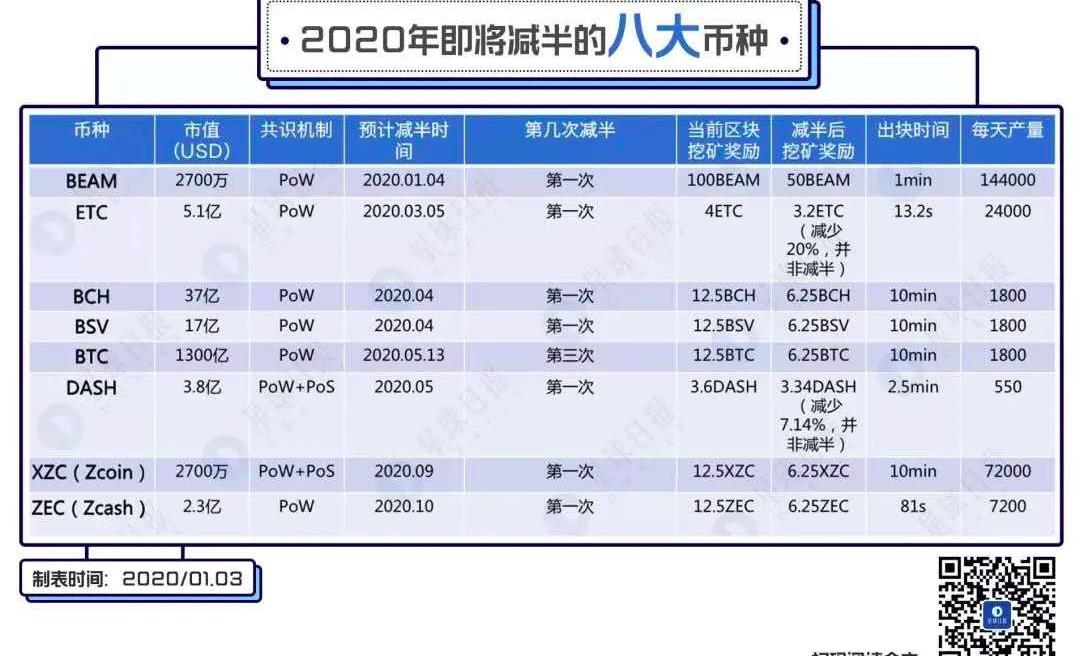 今年,除了比特币,包括ETC、BCH在内的众多币种也将迎来减半,业内也将2020年称之为“减半年”。具体减半名单如下所示,建议收藏: