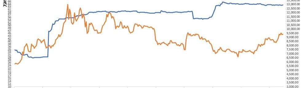 资料来源:CoinMarketCap,TokenMania本周累计换手率排名前三位的分别是ETC的每日平均值。4.交易所钱包余额:BTC余额减少0.22%,USDT余额增加1.08%本周交易所BTC钱包余额63.6814万BTC,较上周同期减少0.1419万BTC,减少0.22%;交易所USDT钱包余额18.236亿USDT,较上周同期增加0.1956亿USDT,增加1.08%;当前USDT流通总量为45.8757亿美元。图10近期交易所BTC余额与BTC价格走势