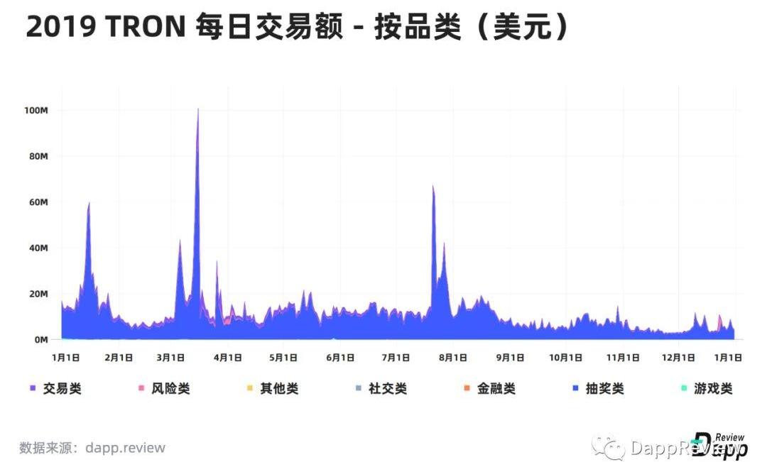 用“区块链上的拉斯维加斯”来形容2019年的波场Dapp生态是最合适不过的,交易额前十的波场Dapp中有8个是抽奖类Dapp。2019年,波场Dapp总交易额为44亿美元,其中抽奖类Dapp贡献了39.9亿美元。无论从流水、玩法还是游戏体验上,波场上的抽奖类Dapp都已对其他链形成了碾压之势。