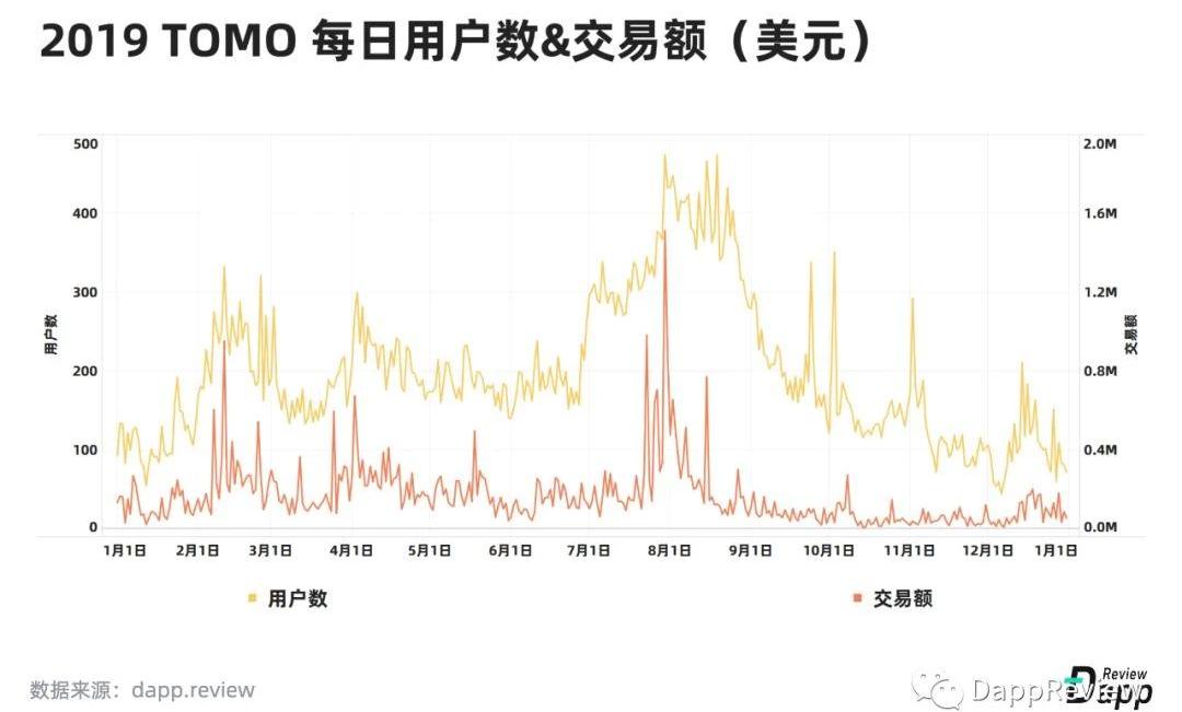 LOOMNetwork上共有16个Dapp,CryptoZombies作为LOOM上最具代表性的Dapp,表现一直比较稳定。自去年8月上链之后,基本靠一己之力撑起了全链下半年的整体数据。此前在Kickstarter上募资32.1万美金、被寄予厚望的卡牌游戏ZombiesBattlegrounds,在历经一年半的开发后遭遇难产,游戏的主要负责人已经离职,整个项目将会开源交还给社区。目前,LOOM将重心放在了Basechain上,力求在DeFi领域寻求突破口。2019年9月,LOOMNetwork宣布MakerDAO成为支持其跨链网关的首个项目,稳定币Dai将可通过LOOMNetwork跨链至波场以及BinanceChain。Binance已经在LOOM的Basechain上启动其验证节点,不久后,用户可以直接从他们的Binance账户中锁仓并获得奖励。未来,LOOMNetwork还将继续开发支持EOS和Cosmos,并计划在2020年开展与泰国政府的试验项目合作,推动区块链技术的落地。TOMO