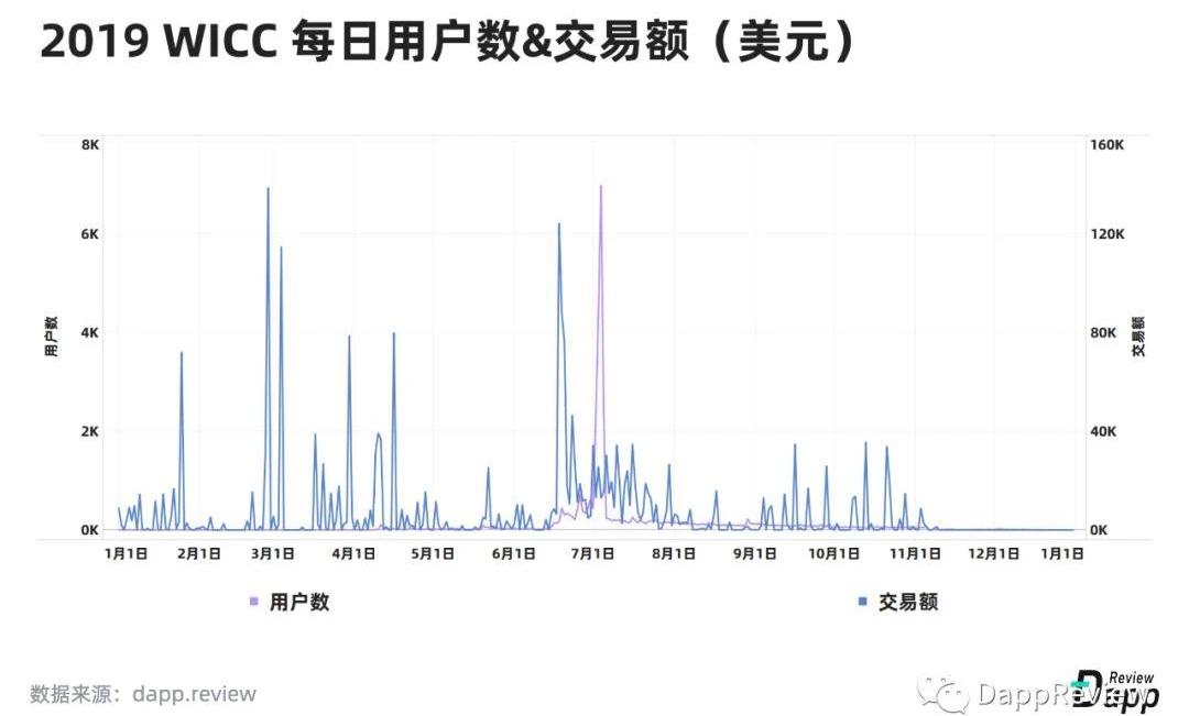 目前TOMO上共有22个Dapp,其上最大的Dapp是TomoMaster,一款TomoChain治理Dapp,其余Dapp大多为抽奖类。这些Dapp的活跃度在二、三季度迎来一小波爆发,从第四季度开始逐渐变得无人问津,目前有流量的Dapp数量已不足10个,这一数字仍在降低。WICC