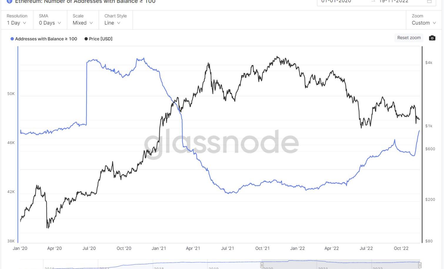 ETH持币地址数:持币1000以下地址数依旧保持上涨的趋势,持币1k以上地址数开始横盘。