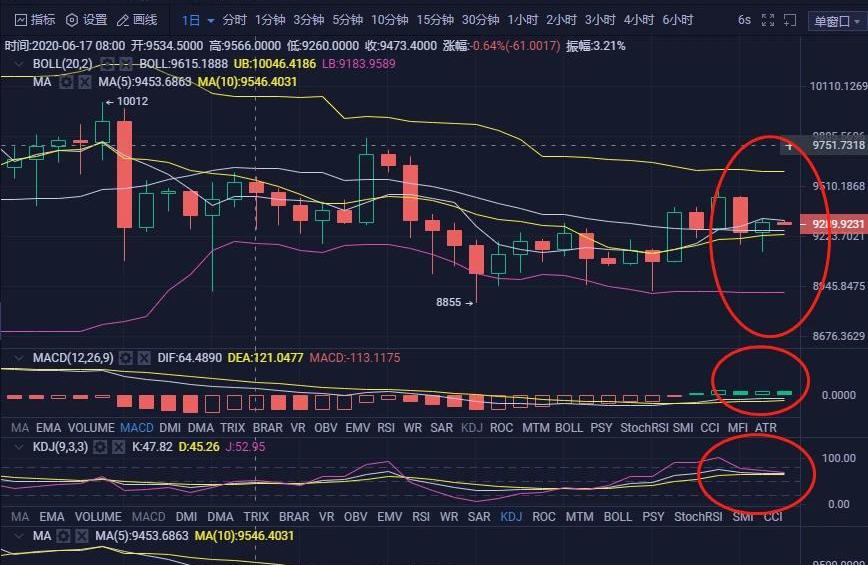 今日行情分析: 比特币今日整体波动不怎么可观,整体一百点内波动,整体来说行情走了一波震荡下行的走势,但是目前收到一个小支撑反弹一波但是没有多大力度,整体从一小时来看,目前布林带成收口平行走势.
