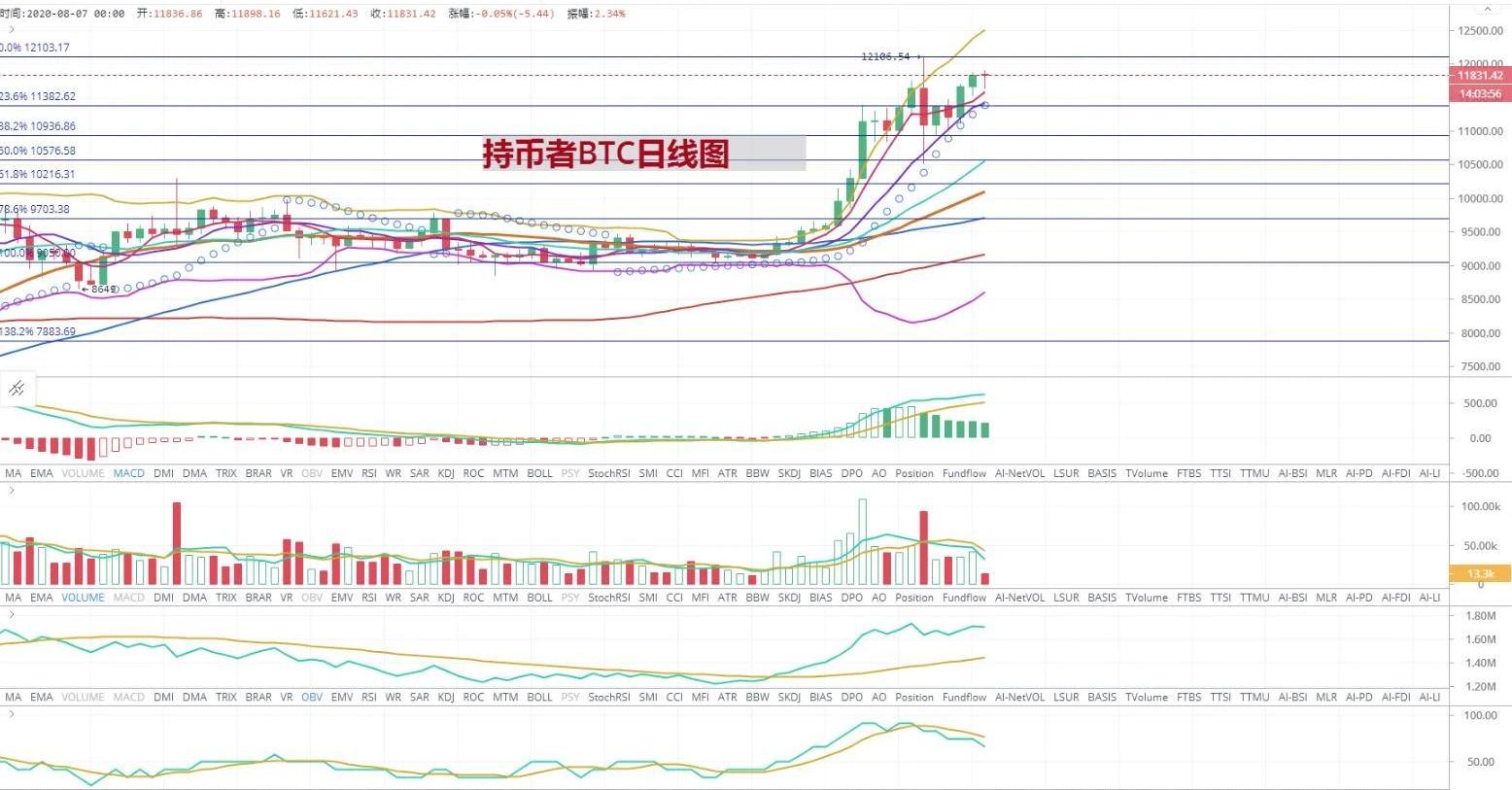 最近持币者一直在说周线图中行情已经逼近去年6月24日13968一线,目前比特币行情处于峰顶位置。在日线图中,经过之前8月2号暴跌,波动达到1600点左右,这在8月2号持币者文章里有,这里就不多写。目前行情有点补涨的趋势,行情就是2个方向,补涨和回落但是,补涨的风险是高于回落的风险的,不管是从内部还是从外部去考虑,篇幅有限就不多写。
