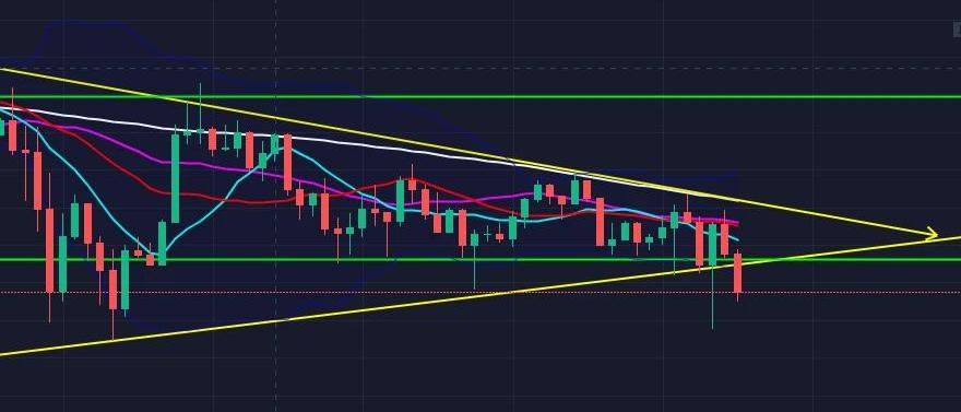 比特币日内属于来回震荡下行状态,目前日线来看上方11400还是说一个强势的压力位在昨日和今日都未能破位上行,并且从macd以及量能来看,行情逐渐向空势发展,同时指标rsi也成死叉状态破位80超买区域,四小时目前布林带呈平行状态,蜡烛图也一直处于布林带中轨下方,但是底部获得10日均线支撑,如果能破位10日均线那行情将延续下行,同时macd死叉延续有想破零轴现象,一小时目前呈现三角整理阶段,但同样到达尾声,大家需要注意上压力和下支撑破位,如果破位激进现价进场,稳健等回踩确认进场。