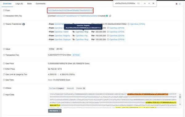 伪造的 OpenSea 代币看起来好像是由 OpenSea: Registry 在此交易中转账的