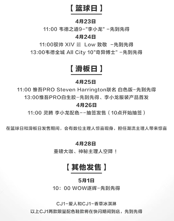 这也许是一个信号,意味着李宁正在尝试全面拥抱加密领域,文中提到的线下快闪店也让人充满好奇,好奇头号国民运动品牌李宁是不是已经大手将Bored Ape Yacht Club#4102形象收入囊中,而快闪店中这一系列的活动,有没有可能有无聊猿或者李宁相关的NFT作品展现,李宁这一手营销玩得直呼666,不仅快闪而且全部限量先到先得,不只是单单饥饿营销这么简单。下图是快闪店的发售日历,大家自行感受一下。