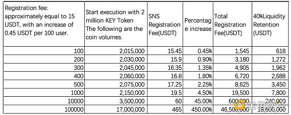 最初,1个SNS的10Matic注册,每增加100人注册,价格固定上涨0.45USDT(约占初始注册费的3%)。