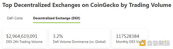 2.过去24小时去中心化交易所的交易量:29.64亿美元