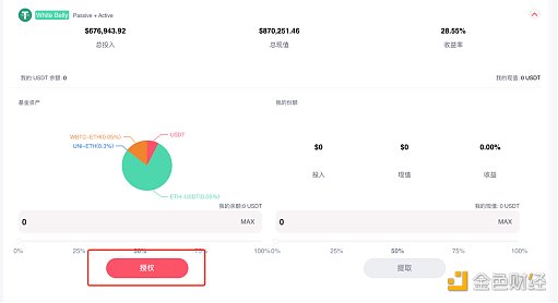 第一步,用户打开Hotpot V2平台,连接支持以太坊网络的钱包,连接成功后,可看到USDT、USDC、ETH等基金的一些基本信息,包括总投入、总现值、实时收益率以及各种基金中加密资产的分布情况。