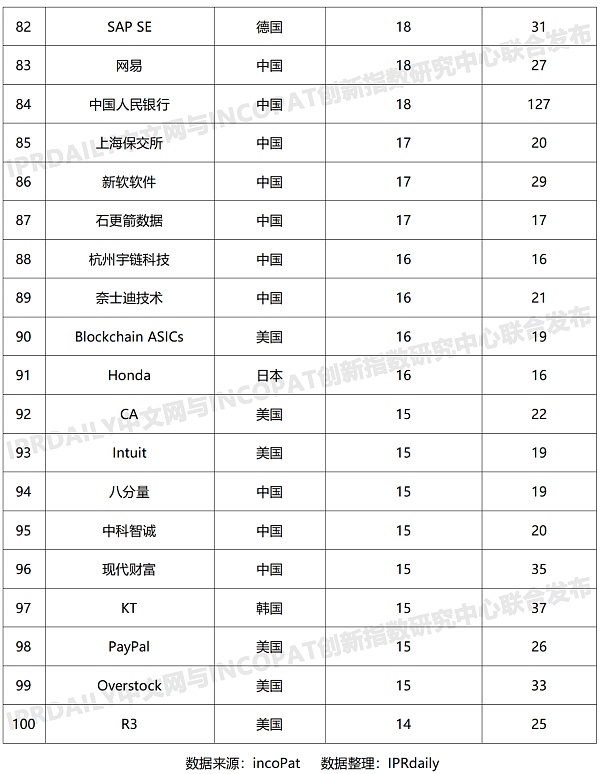4月24日,知识产权产业媒体IPRdaily发布“2019年全球区块链发明专利排行榜(TOP100)”。这份榜单通过对2019年全年公开的全球区块链技术发明专利申请数量进行统计排名,榜单显示入榜前100名企业主要来自9个国家和地区,中国占比60%,其次为美国占比 22%,日本占比 6%,韩国和德国分别占比 5% 和 3%,芬兰、安提瓜和巴布达、爱尔兰和瑞典各占比 1%。