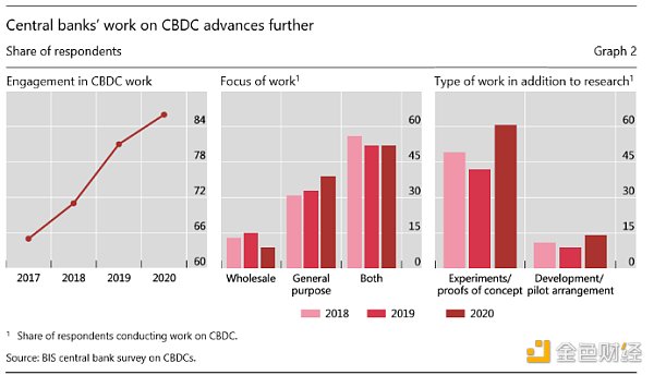 2020年,零售CBDC正式启动,未来几年可能还会推出更多的CBDC。现在,大多数中央银行都在以某种方式探索CBDC的案例,总体而言,该调查表明发生了从纯概念研究到试验和试点项目的持续转变。尽管有这些发展,但距CBDC的广泛推广似乎还有一段距离。