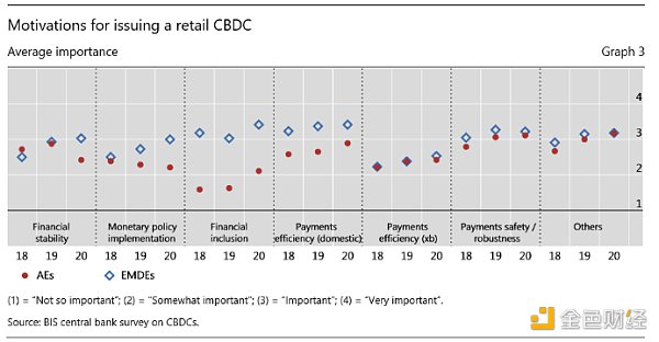 与支付相关的动机,如国内支付效率和支付安全,仍然是AEs和EMDEs发行通用CBDC动机的核心。