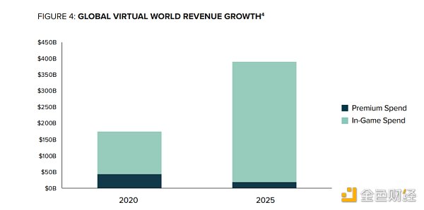 Grayscale 认为到 2025 年虚拟游戏世界的收入为$400B,而整个元宇宙的收入为 $1T。