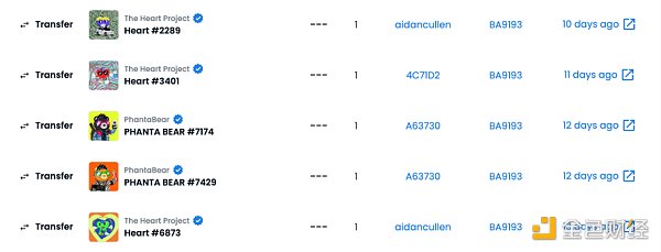 虽然PhantaBear借助周杰伦的影响力一炮而红,但从周杰伦的钱包来看,他对于NFT的了解显然是处于初级阶段,周杰伦并没有直接Mint PhantaBear,而是通过从「A63730」处转账获得,另外4天前,他从The Heart Project的创始人处也获得了2个Heart,其中一个周杰伦转发给了「CE50F3」。