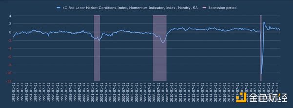 图?3: 堪萨斯城联储劳动力市场动能指标与历史衰退