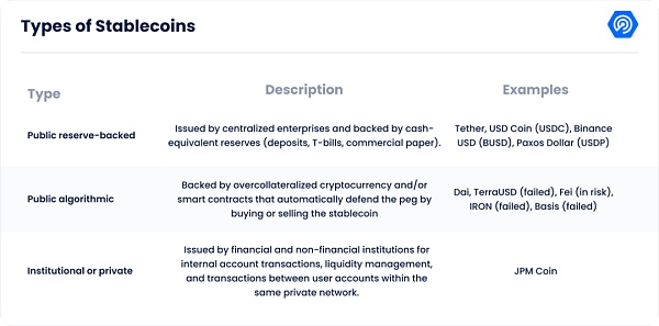 任何稳定币表现的最重要指标是资产将其与参考价值挂钩的程度。如上表所示,稳定币可以从不同的角度进行分类,每种类型都有自己的缺点。