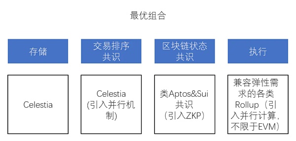 交易排序共识--Celestia:通过引入DAS(Data Availability Sampling),Celestia能够提供高效的对交易顺序的共识;此外,将交易进行分类后的并行计算,也同样能加速此结构。