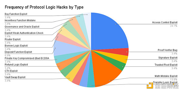 涉及跨链桥或多链应用程序(例如多链交易或多链借贷)对数据集产生了巨大的影响。尽管这些黑客事件只占总数的 10%,但却窃取了 25.2 亿美元的资金。