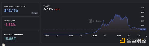 11月14日消息,DeFiLama链上数据显示,当前DeFi项目总锁仓量(TVL)为576.47亿美元。锁仓量资产排名前五(美元): Maker(67.53亿+0.13%) Curve(65.48亿-0.02%) Aave(46.04亿-1%) WBTC(39.82亿-1.84%) Uniswap V3(36.6亿-0.31%)