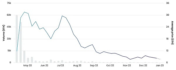 对于加密货币和 NFT 等高风险资产尤其如此。与许多成长型股票一样,这些更具投机性的资产在利率上升的环境中跌幅最大。对于 NFT 来说,这意味着很多项目的流动性和交易量已经接近枯竭,就连热门的“蓝筹”NFT 项目也出现了大幅下滑。