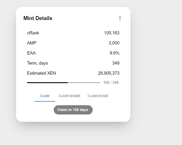 Mint NFT的时候跟XEN时相似也是自己选择天数,到期之后执行的操作也和XEN一样,可以mint到本地址,也可以委托给其他地址。到期日要及时领取,不然7天后代币也会销毁。燃烧的XEN越多所获得的NFT等级越高,MINT时可自由选择。