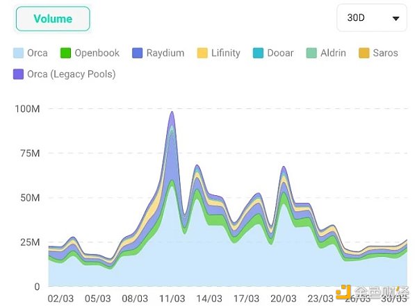 DEX 的近期交易量(截至 3 月 30 日的数据,来源:Solscan)
