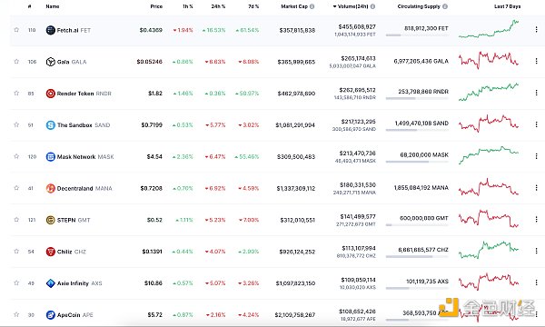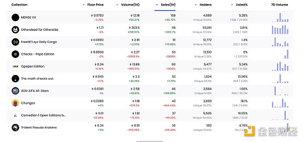 24小时NFT交易量、交易量前十项目 数据来源:Coinmarketcap