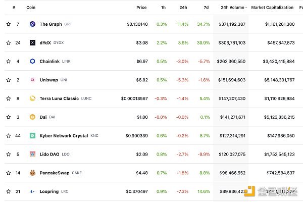 过去24小时去中心化交易所的交易量 数据来源:coingecko