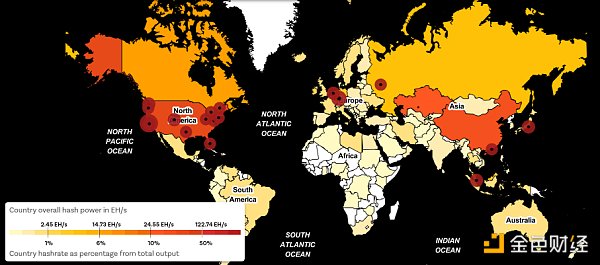 比特币去全球当前算力地图 数据来源:chainbulletin