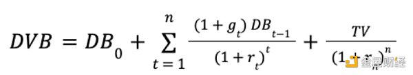 其中 FTFt 代表第 t 年的自由代币流量,rt 代表第 t 年的折现系数,TV 代表最终价值。