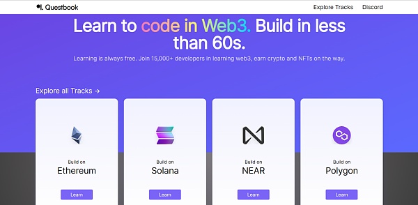 Questbook 是一个为 Web3 构建者提供的捐助和赏金的工具,也发布了一个去中心化的学院,帮助开发者学习在 Web3 中编码,涵盖以太坊、Solana、NEAR 以及 Polygon 上的免费编码知识,完成任务后还可获得 NFT 奖励。