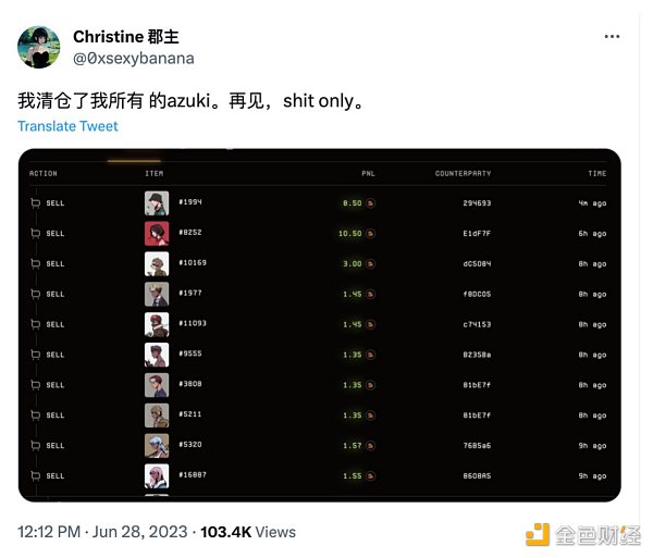 知名 Azuki holder @Christine 郡主连发数条推文表达了对Azuki 官方的失望,并且卖出所有Azuki 藏品。