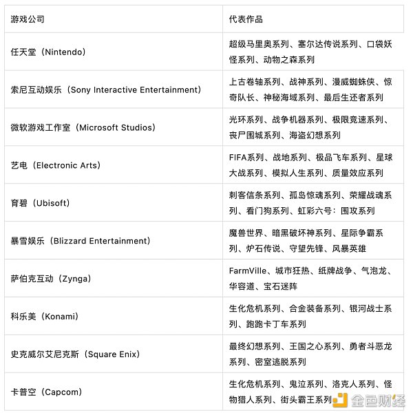 传统游戏公司和去中心化游戏平台的市值对比(2023 年 3 月 9 日)