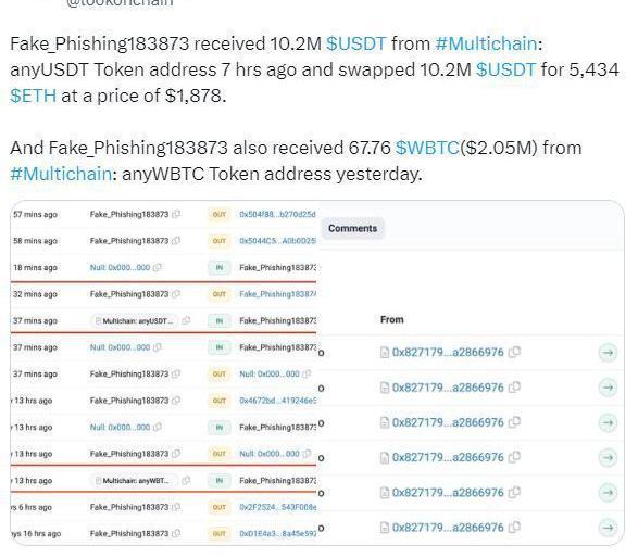 黑客似乎破坏了协议的私钥,并随后将协议资产转移到其他地方,尽管直到7月10日这些资金才再次采取行动,一个名为Fake_Phishing183873的钱包地址收到令人震惊的1020万美元USDT和67.76个包装版比特币wBTC。