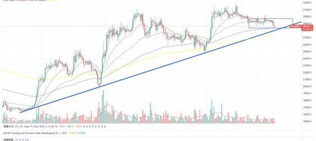 2.目前价格是在5月底的高点附近获得支撑,如果继续下跌,下面两个支撑位置大概在2.6w和2.5w附近