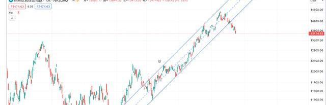 一些今年表现非常好的代表性美股也出现各种趋势破位。英伟达出现了教科书般标准的顶部上升楔形的反转形态