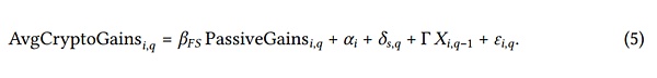 其中,CryptoWealth的计算方式如方程1所示,而NetWithdraw?,q?3→q被定义为过去4个季度内(包括当前季度q)家庭i的总加密货币提款减去总加密货币存款。因此,CryptoGains包括家庭所经历的实现收益和未实现收益。