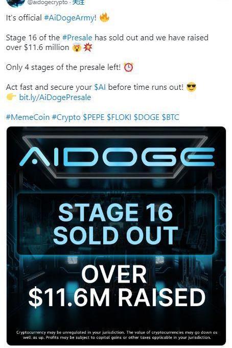 在一个月的时间里,AiDoge在其预售中吸引了惊人的1200万美元投资,在预售售罄之前只给潜在投资者留下了微薄的利润空间。