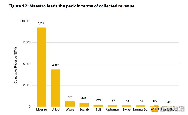 Maestro目前在累计收入方面领先,Unibot位列第二,但二者收入额差距1倍以上