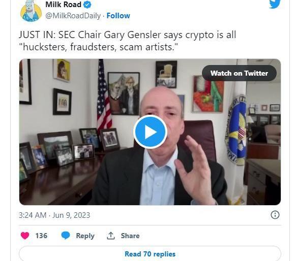 在6月8日的全球交易所和金融科技会议演讲中,美国证券交易委员会主席GaryGensler,将加密货币市场比做1920年代证券法尚未制定时,到处都是的股市。