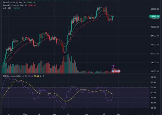 目前,BTC在过去一天上涨3.41%后交易价格为28,382.50美元。与此同时,ETH的价格在过去24小时内上涨超过2%后达到1,868.73美元。BTC的价格几乎达到28.5k美元并创下28,463.48美元的24小时高点,但略微回落至当前水平。在此期间,ETH也只能达到1,880.17美元的高位。