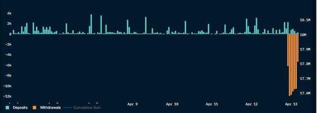 已有超过75,000ETH未抵押,过去24小时内取款多于存款。