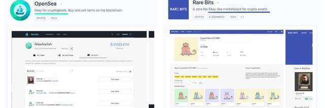 2018年2月同一天,OpenSea和RareBits在ProductHunt上发布。OpenSea将自己描述为「加密商品的eBay」。RareBits定位为「一个类似eBay的零费用加密资产市场」。两者都瞄准了NFT世界的eBay这个方向,但运营策略不同。OpenSea坚持从用户交易中收取佣金,而RareBits则提供了免费的交易模式。历史盖棺定论,互联网时代补贴用户从而依靠流量构建护城河的策略在这里失效了,今天的NFT市场早已是OpenSea一家独大的局面,RareBits却早已消失在历史尘埃中。