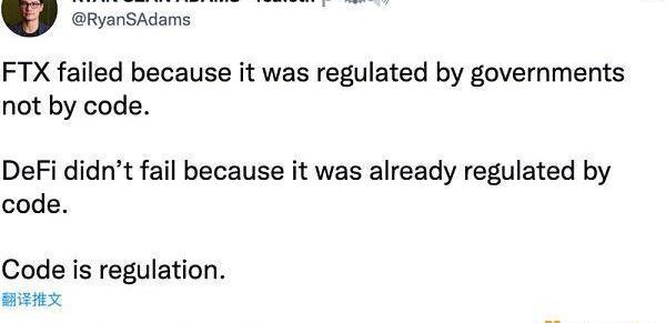 FTX之所以失败,是因为它是由政府而非代码监管的。DeFi没有失败,因为它已经受到代码的监管。代码就是监管。