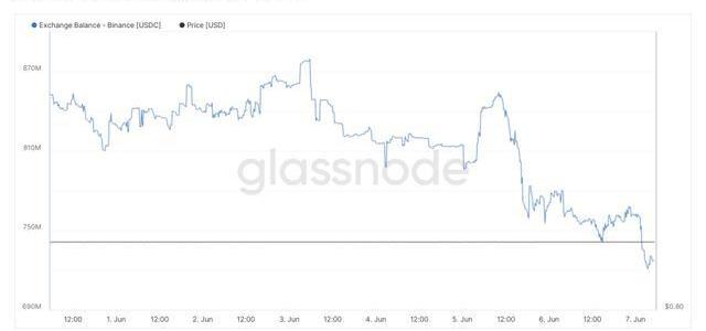 接着是USDT的数据,也是在事件发生开始的时候提现量最大的资产,截止到北京时间下午13点,Binance中存量的USDT还有19.1亿,昨天中午11点的数据是21.1亿,在26小时内下降了2亿美金,而昨天的12小时内降低了3.3亿美金,目前的降低量大概是当时的40%,而且这还仅仅是Ethereum链上的资金,并没有包括其它链的资产。同样按照目前的提现规模,Binance剩余的Billions项目组USDC可以支撑12天。