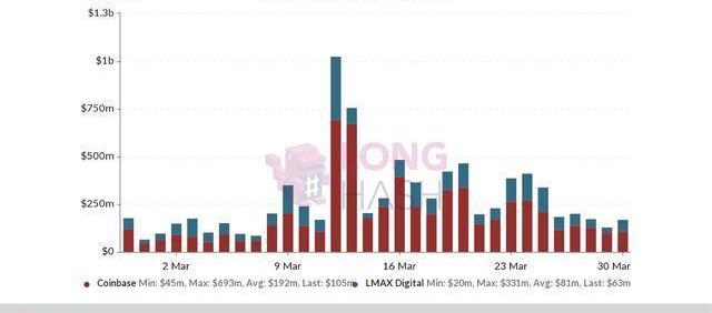 自2月中旬以来,期货和现货交易所的交易量一直相对停滞。这表明在过去两个月中,不论市值大小,对加密资产的整体购买需求都没有增加。尽管比特币价格上涨,但该数据表明,市场上的购买者并没有真正增加,因此无法实现加密资产的长期反弹。